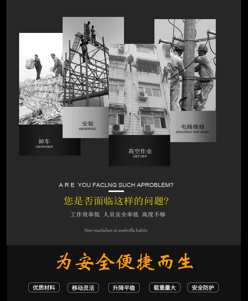 您的位置:主頁  > 產(chǎn)品展示  > 移動(dòng)式鋁合金升降機(jī)